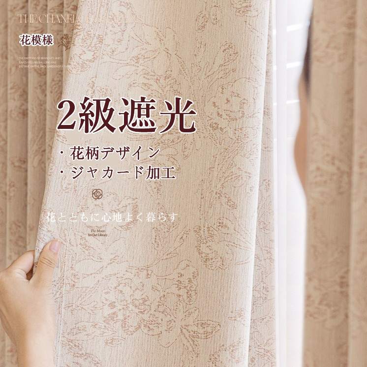 フランス風 優雅 5色展開 花柄デザイン ジャカード加工 2級遮光 防音遮音 断熱防寒 節電対策 優れた垂れ感 冷暖房効率UP ドレープカーテン 2倍ヒダ