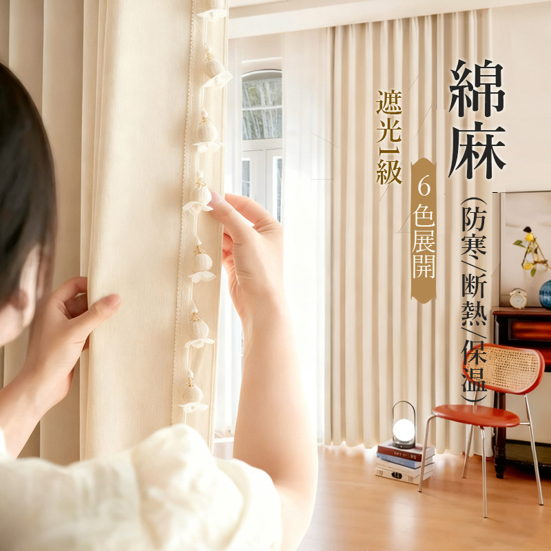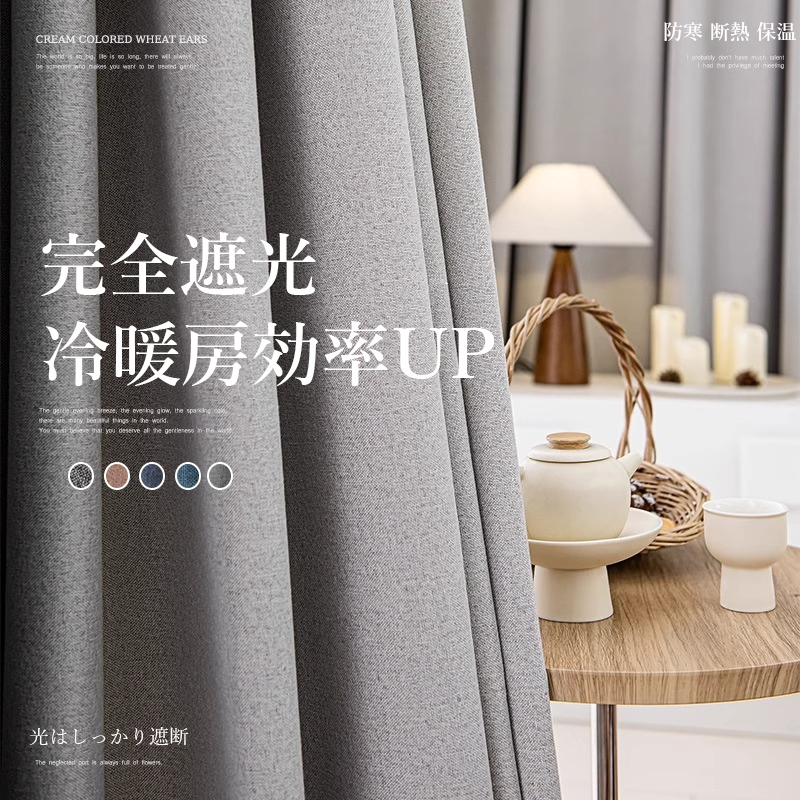 おしゃれ 5色展開 高級 綿麻カーテン 厚地 光はしっかり遮断 完全遮光 安眠 冷暖房効率UP 寒さ対策 防寒 断熱 保温 優れた垂れ感 オーダー ドレープ カーテン 2倍ヒダ