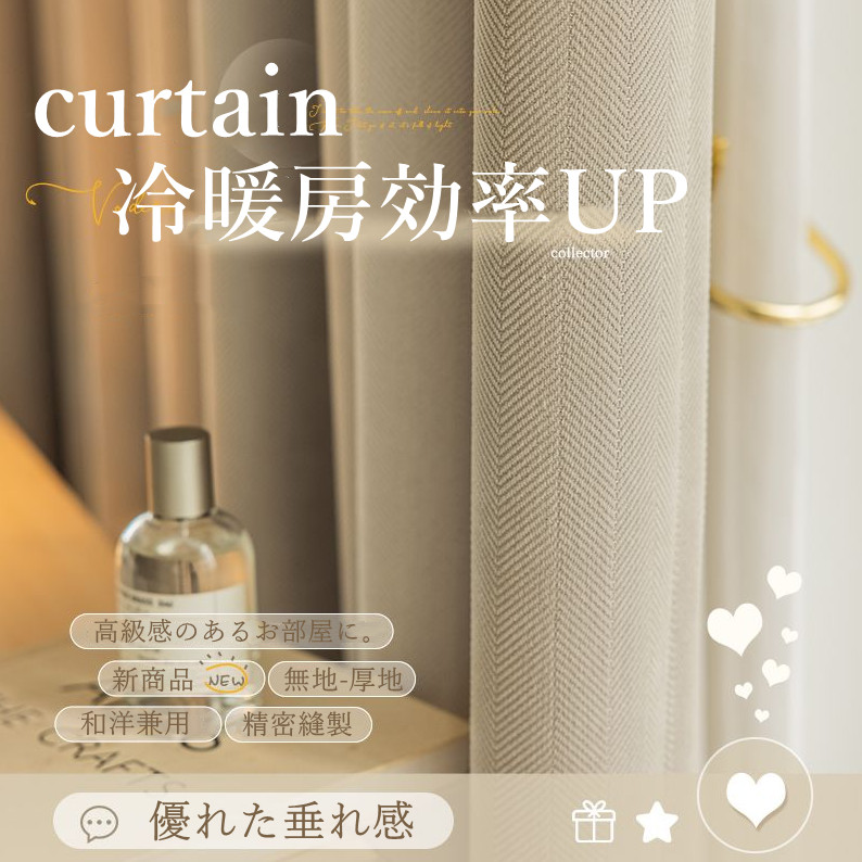人気を獲得♡ 和洋兼用 無地 高級感 北欧風 完全遮光 防寒断熱 防音遮音 節電対策 遮光1級 冷暖房効率UP 良い垂れ感 ドレープカーテン 2倍ヒダ