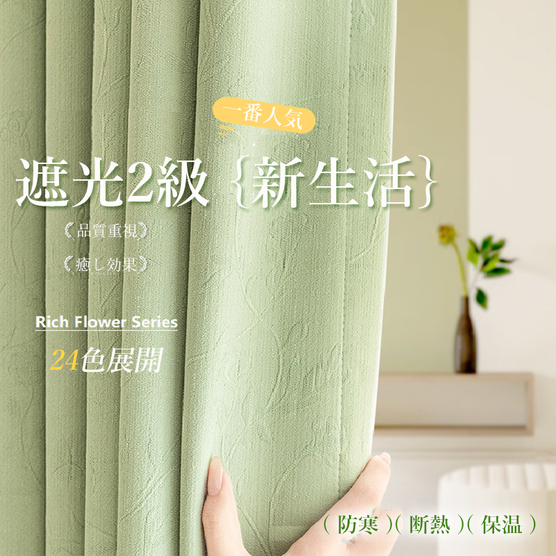 レトロ風 フランス風 癒し効果 立体感 花柄 葉柄 ジャカード加工 1級遮光 防音遮音 断熱防寒 節電対策 優れた垂れ感 ドレープカーテン 2倍ヒダ