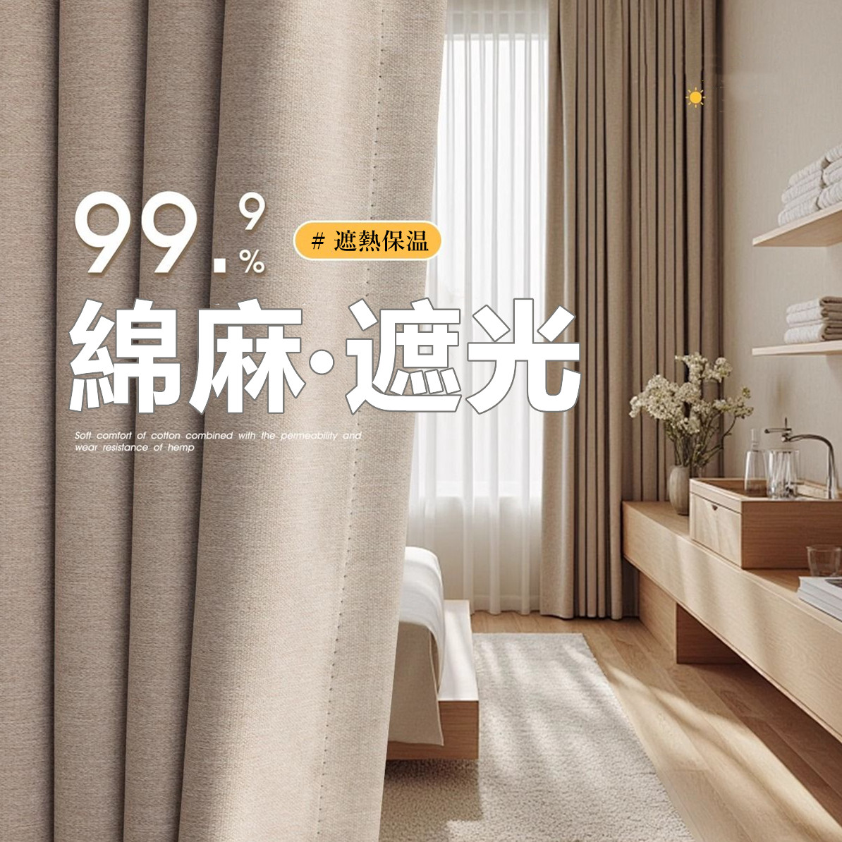 定番シンプル 遮光1級 和洋兼用 ナチュラル 無地 品質に自信 断熱保温 厚地 綿麻 冷暖房効率UP 節電 防音 安眠 柔らかな肌触り ドレープカーテン 2倍ヒダ
