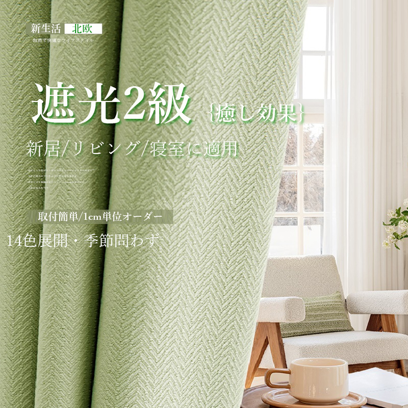 季節問わず 14色展開 新生活 癒し効果 遮光2級 寒さ対策 防寒 断熱 保温 冷暖房効率UP 安眠 洗濯機対応 優れた垂れ感 1cm単位 オーダー ドレープ カーテン 2倍ヒダ