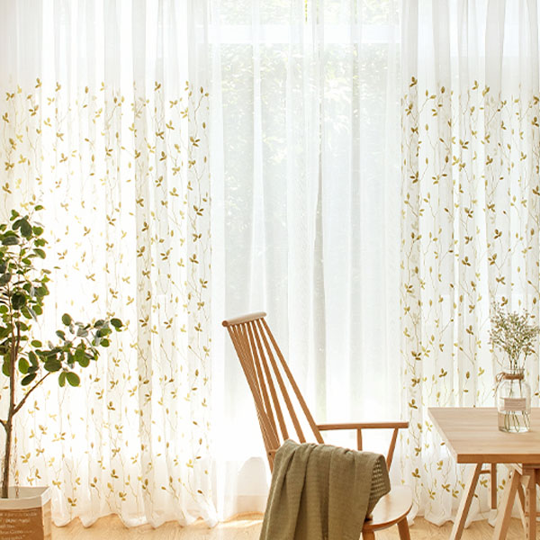 【レース】おしゃれ ボタニカル リーフ柄 ナチュラル 遮像 レースカーテン 2倍ヒダ