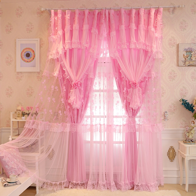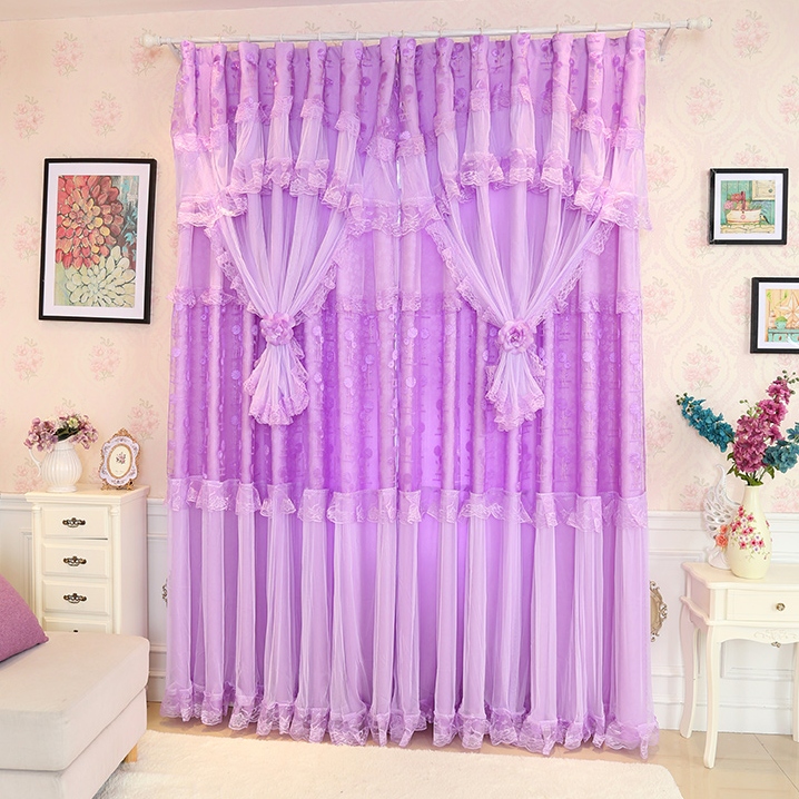 遮光2級 カラフルなリーフデザイン 3色 ドレープとレース 二重 一体型カーテン 2倍ヒダ