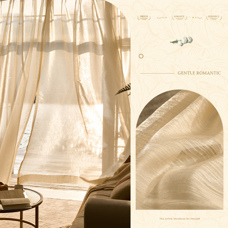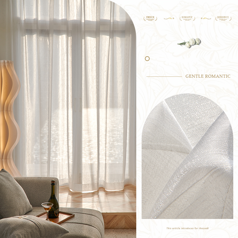 フランス風 2色 高級感 バルコニー リビングルーム 金色の光 半透明 きらきら おしゃれ 花粉防虫 通気性 UVカット レースカーテン 2倍ヒダ