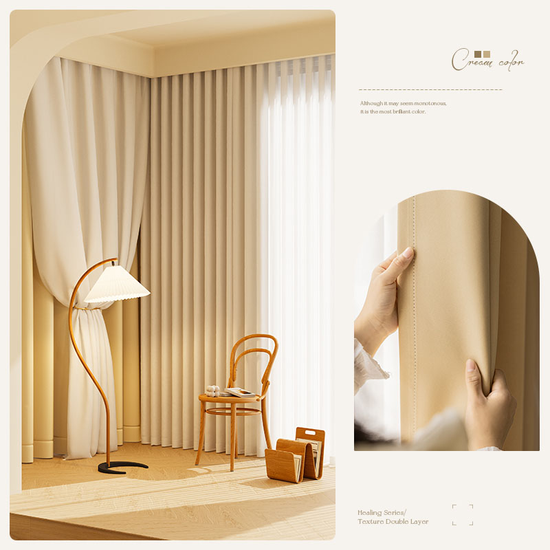 遮光カーテン 遮熱 1cmオーダー可能 無地 おしゃれ レース付き 節電 気分転換 洗濯可 女子部屋 北欧 一体型カーテン 2倍ヒダ