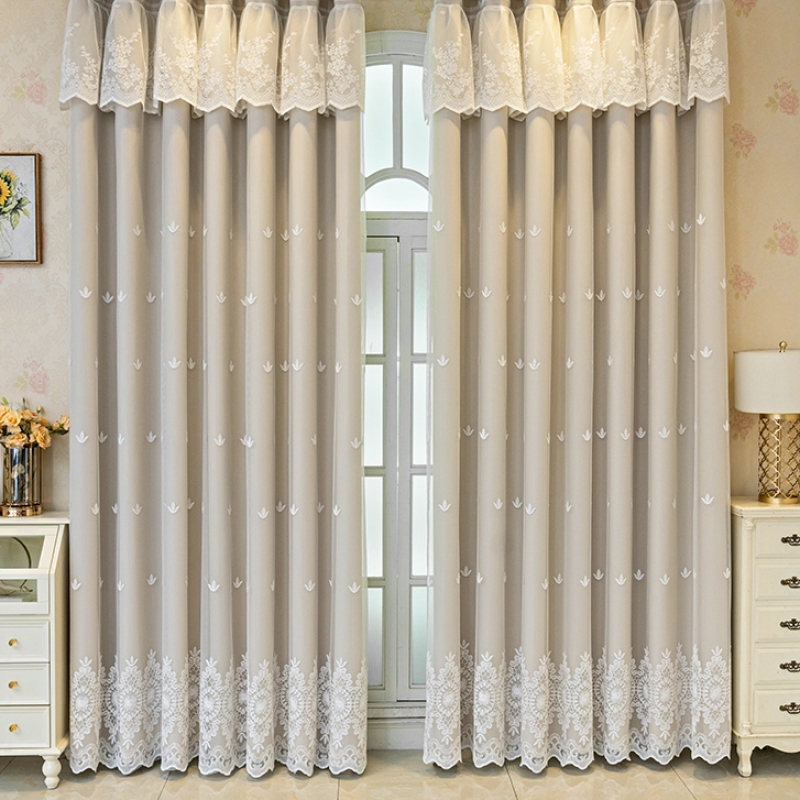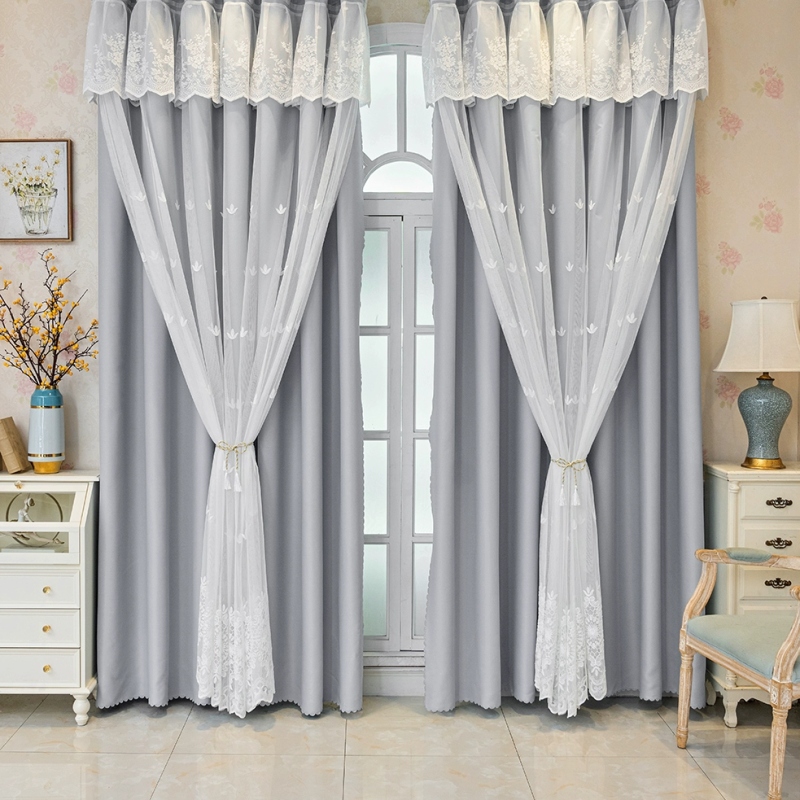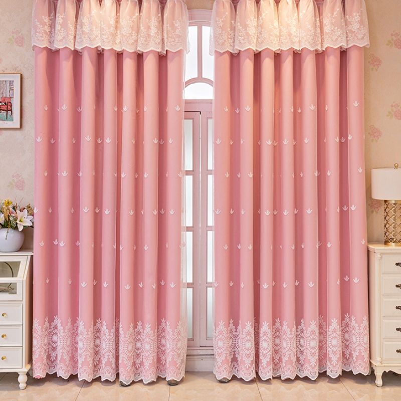 寝室に適用 姫系 2重デザイン ドレープ&レース 遮光2級 防寒断熱 冷暖房効率UP 操作簡単 精密縫製 オーダー 一体型カーテン 2倍ヒダ