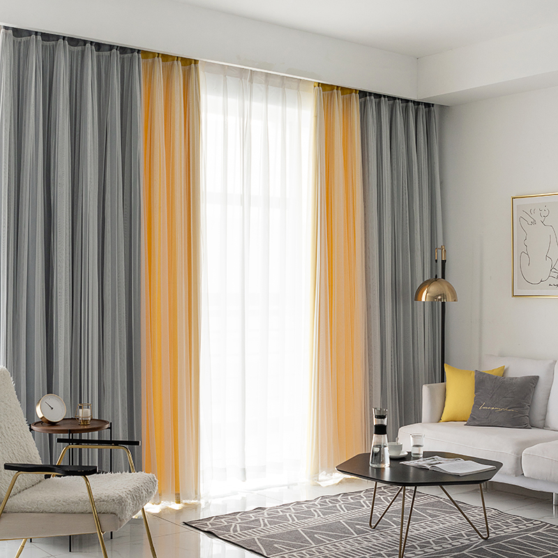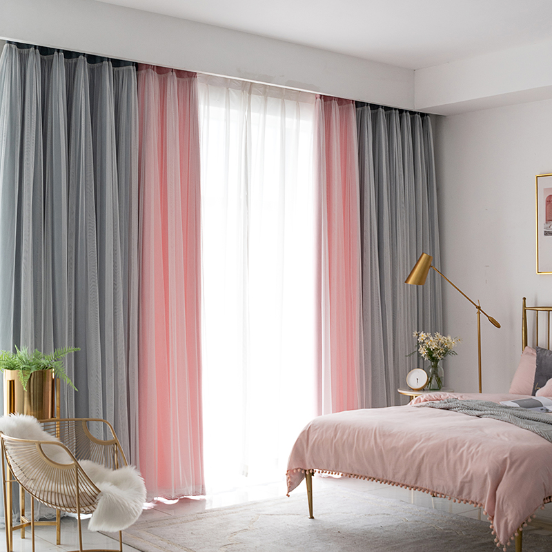 2重デザイン 切り替え おしゃれ ドレープ&レース一体型 遮光 配色 姫系 北欧風 2倍ヒダ