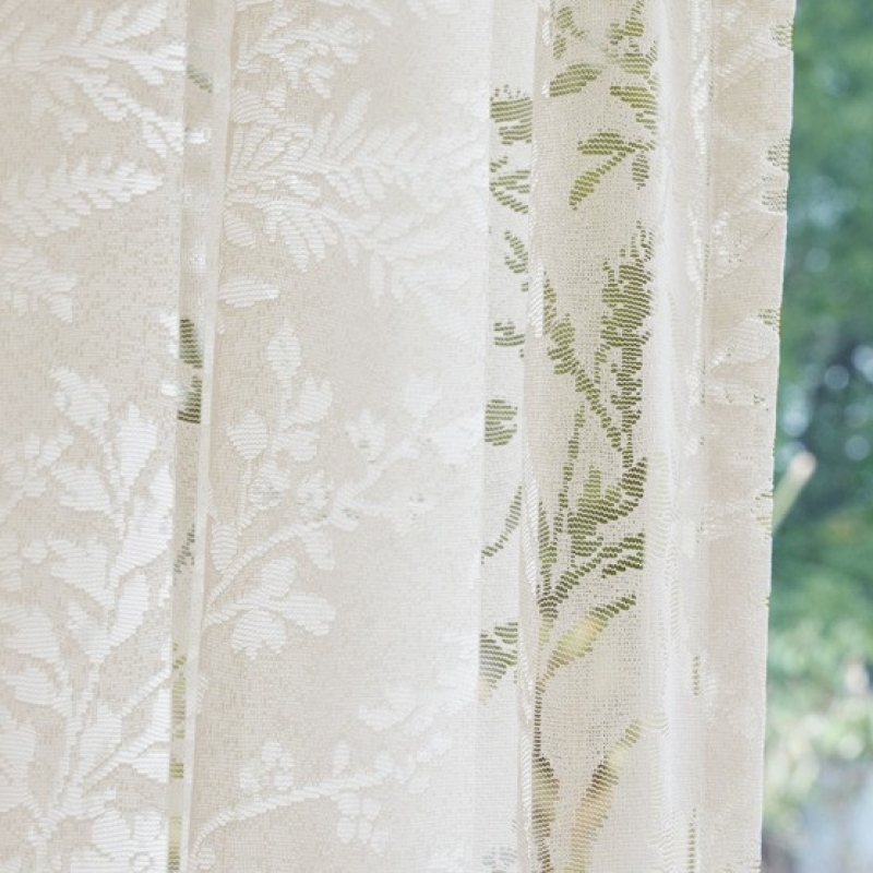 清潔 さわやかな感じ フランス風 外から見えない プライバシー保護 採光 圧迫感なし UVカット 日焼け防止 花粉防虫 ボタニカル柄 オーダーレースカーテン 2倍ヒダ
