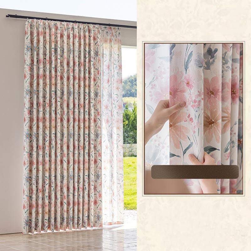選べる4デザイン 高品質 レトロ風 フランス風 花模様 ボタニカル 遮光1級 オーダーサイズ プリントデザイン 高級感溢れる 防寒断熱 冷気遮断 冷暖房効率UP 優れた垂れ感 ドレープカーテン 2倍ヒダ