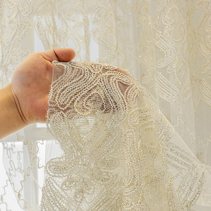 上品でエレガント 刺繍 精密縫製 高品質 採光 雰囲気が明るく 遮像 UVカット 防塵 花粉防虫 昼夜目隠し レースカーテン 2倍ヒダ