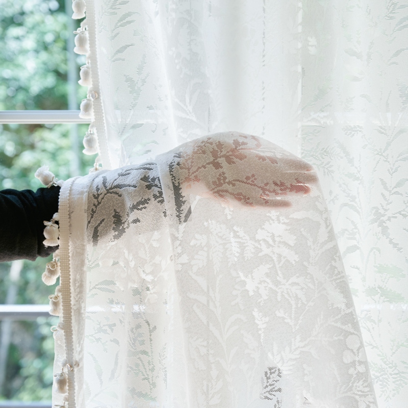 姫系 花柄 透かし彫りデザイン 癒し効果 遮像 プライバシー保護 ホワイト系 採光 圧迫感なし UVカット 日焼け防止 洗える オーダー レースカーテン 2倍ヒダ