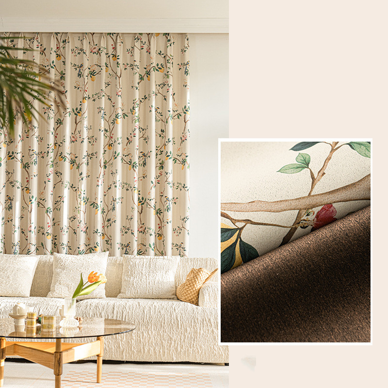 フランス風 レトロ風 花柄デザイン プリントデザイン 手触りが良い 1級遮光 断熱防寒 節電対策 厚地 優れた垂れ感 洗える 省エネ ドレープカーテン 2倍ヒダ