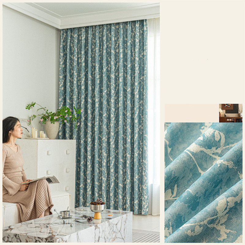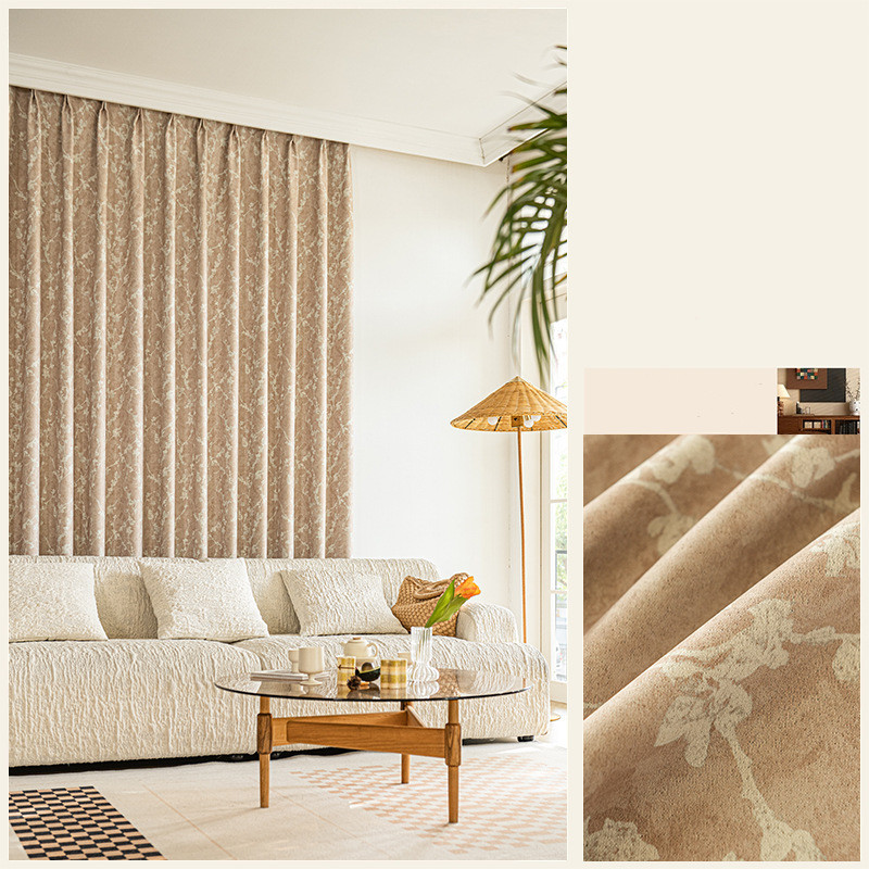 フランス風 レトロ風 ボタニカル プリントデザイン 手触りが良い 1級遮光 断熱防寒 節電対策 厚地 優れた垂れ感 洗える 省エネ ドレープカーテン 2倍ヒダ
