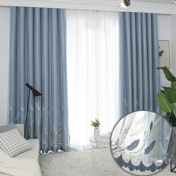 高級感 ジャガード織り 羽根刺繍 北欧 防寒 遮音 1級遮光 おしゃれ 厚手 一体型カーテン 2倍ヒダ