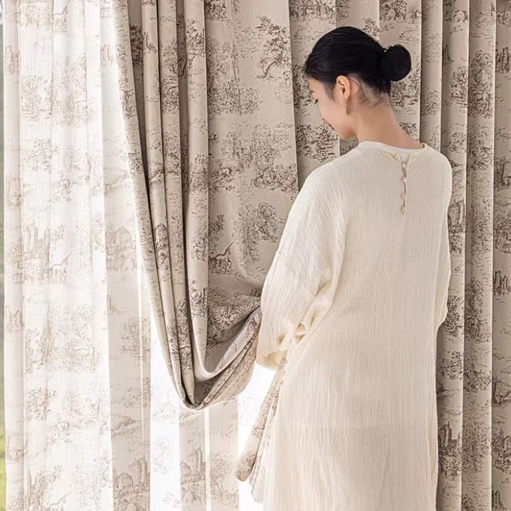 おしゃれ度アップ レトロ風 田園風 ジャカード加工 遮光2級 断熱防寒 節電対策 防音遮音 オーダーサイズ 優れた垂れ感 ドレープカーテン 2倍ヒダ