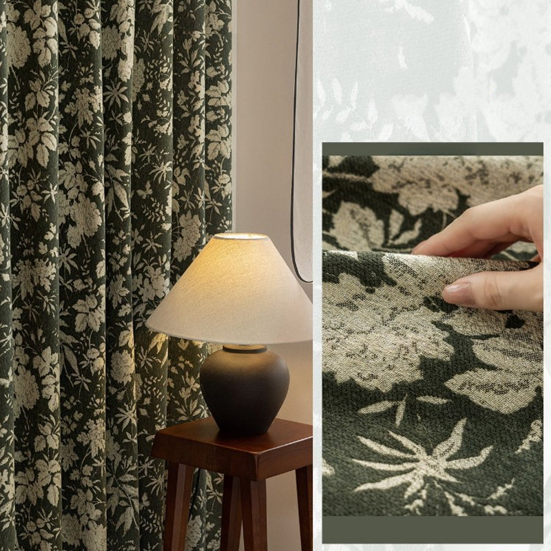 新居 癒し効果 高級 レトロ風 北欧 精密縫製 立体感 花柄デザイン 1cm単位 オーダー 遮光2級 防寒 断熱 保温 冷暖房効率UP ドレープ カーテン 2倍ヒダ