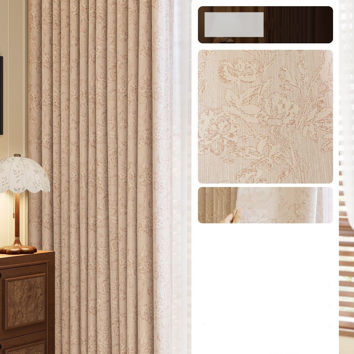 フランス風 優雅 5色展開 花柄デザイン ジャカード加工 2級遮光 防音遮音 断熱防寒 節電対策 優れた垂れ感 冷暖房効率UP ドレープカーテン 2倍ヒダ