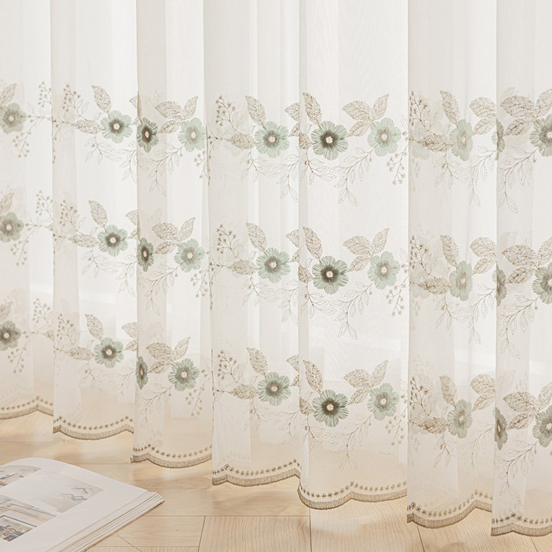 おしゃれ 刺繍 花柄デザイン 上品な可愛さ 圧迫感なし ミラー効果 遮像 目隠し プライバシー保護 採光 UVカット 花粉防虫 1cm単位 オーダー レースカーテン 2倍ヒダ