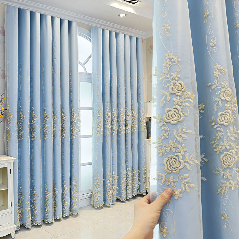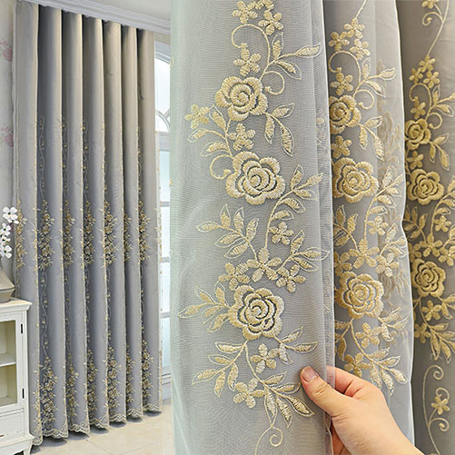 おしゃれ 二重カーテン 一体型 精密刺繍デザイン 3色選べる 1級遮光 断熱保温 2倍ヒダ