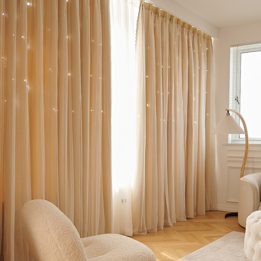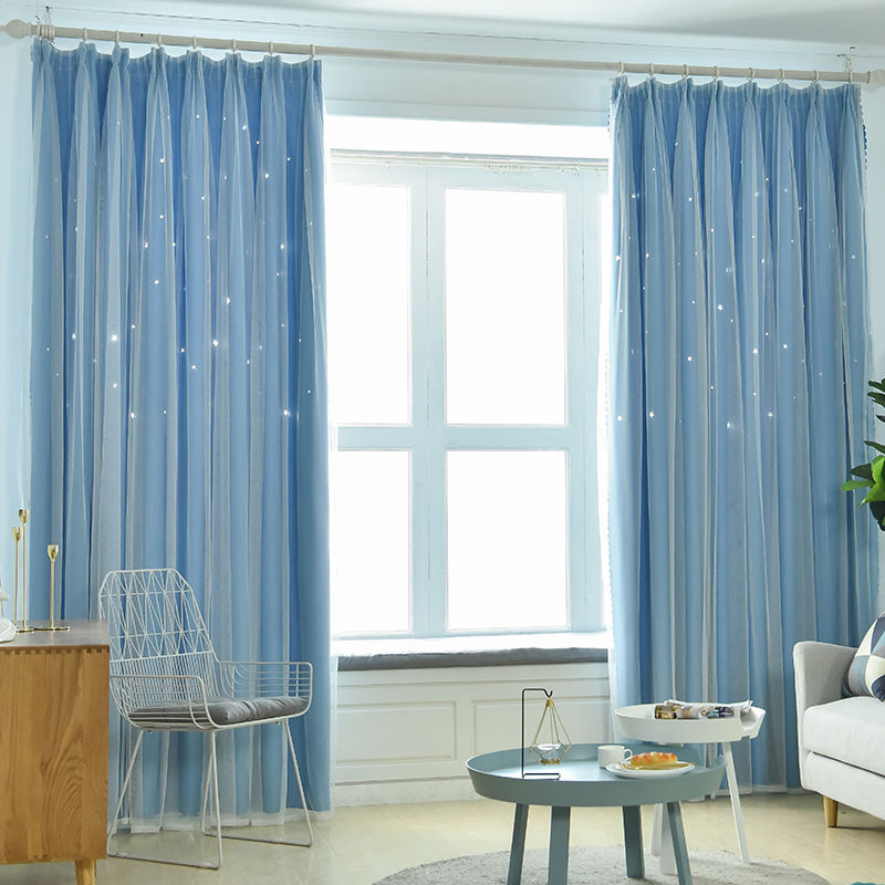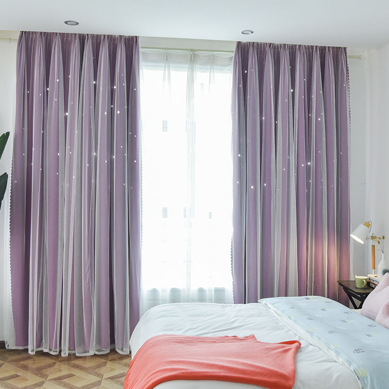 【遮光カーテン・遮光1級】おしゃれ 絶対可愛い キラキラ姫系 透かし彫り星柄 遮光1級 遮熱保温 一体型カーテン 2倍ヒダ