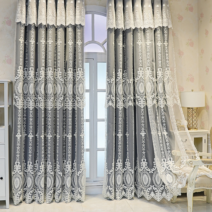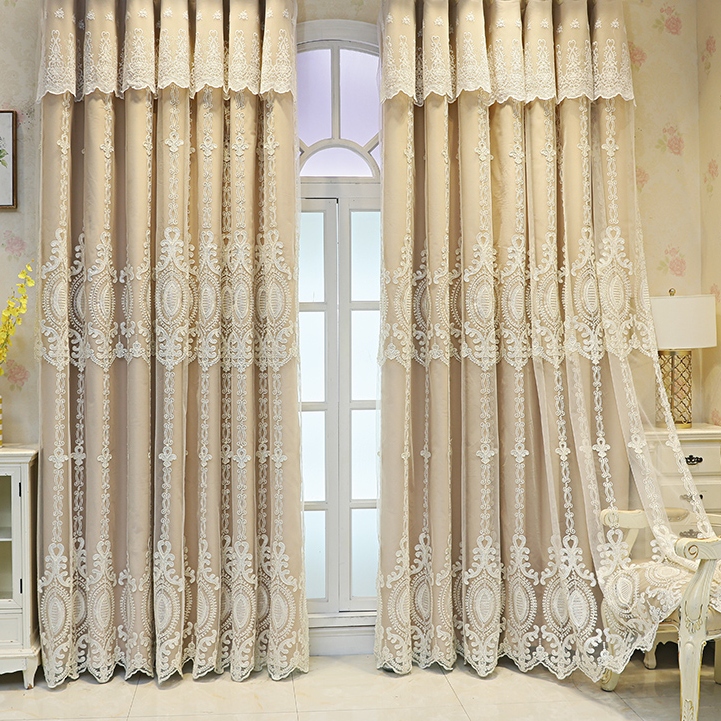 おしゃれ 高級感がある柄 二重カーテン 一体型 精密刺繍デザイン 5色選べる 1級遮光 断熱保温 2倍ヒダ