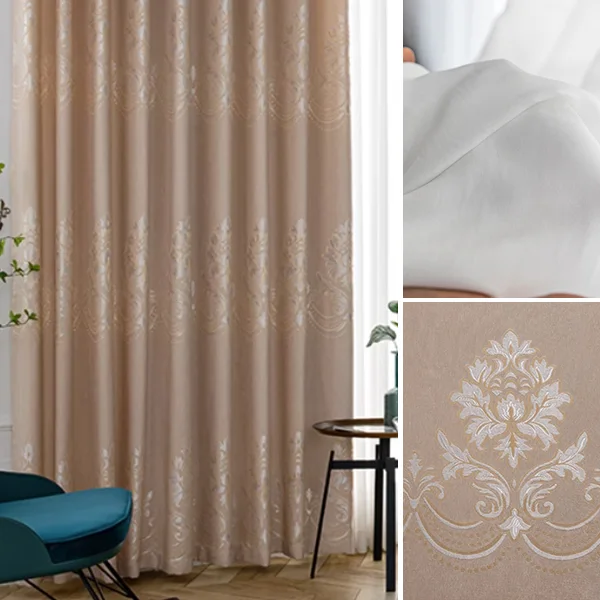 【2枚組】おすすめ 北欧 ジャガード お花 おしゃれ カーテン 遮光1級 厚手 合わせやすい ドレープ1枚&レース1枚 カーテンセット 2倍ヒダ