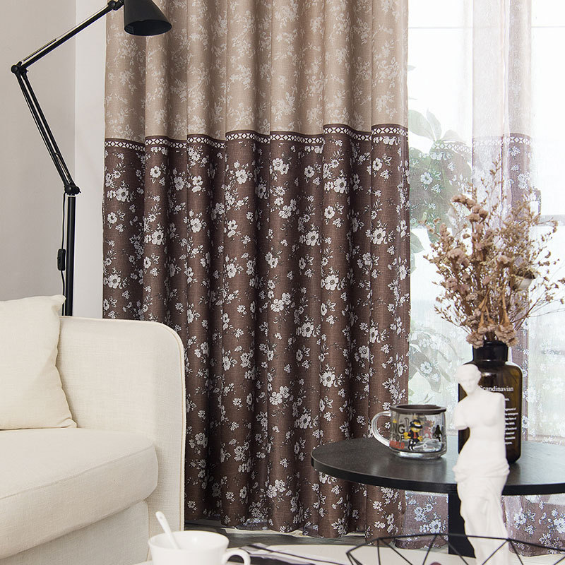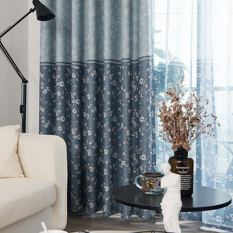 【2枚組】おしゃれ 西海岸風 切り替え色 花柄 2級遮光 ドレープ+レース セットカーテン 2倍ヒダ