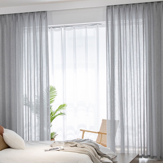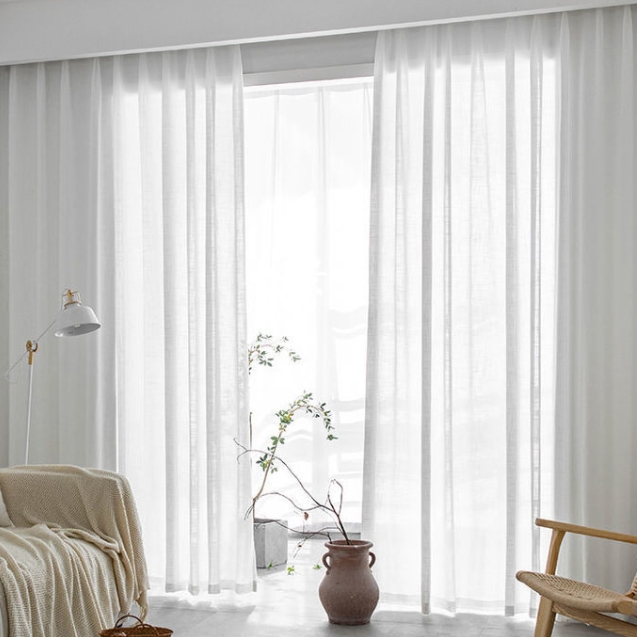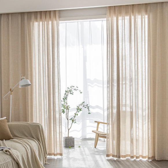 おしゃれ 明るいリネンの生地 遮像バッチリ 軽くて柔らかい 和室適用 無地 UVカット 五色展開 レースカーテン 2倍ヒダ