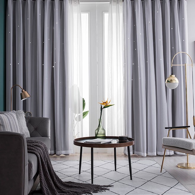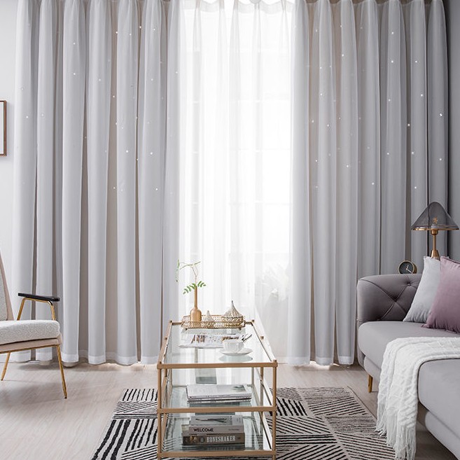5色選択 可愛いデザイン 姫系 おしゃれ 星の透かし彫り キラキラ 子供部屋 女性部屋 遮光3級 遮熱保温 ドレープ+レース 一体型カーテン 2倍ヒダ