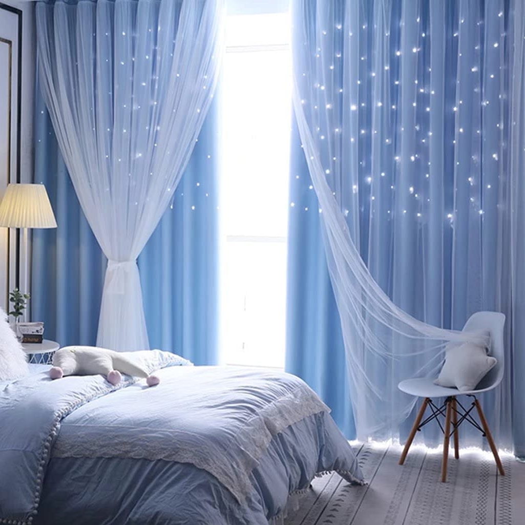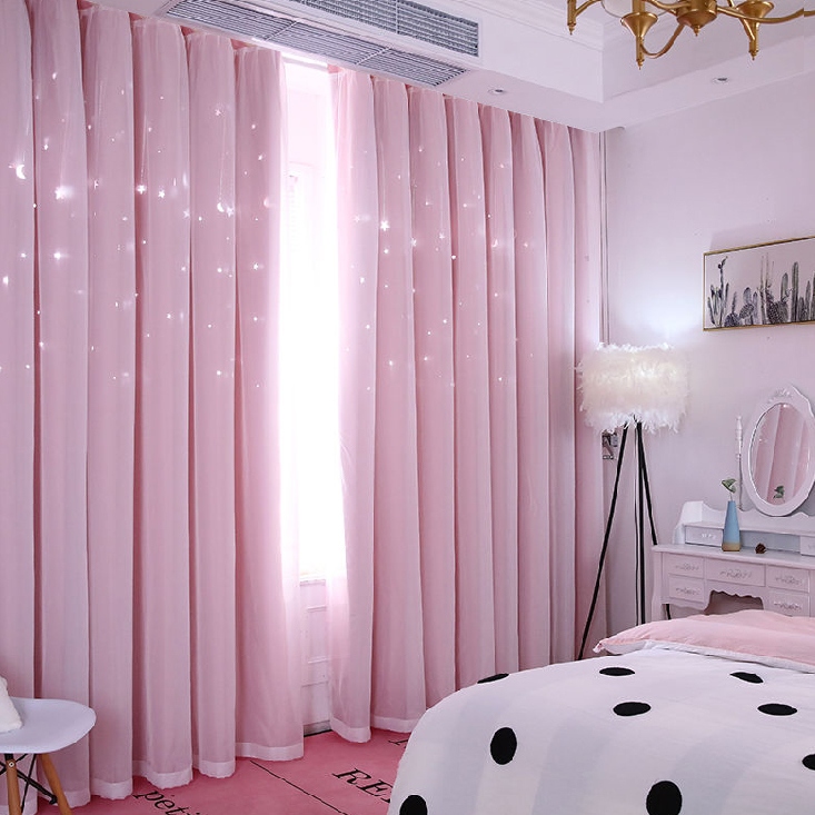 【一体型】おしゃれ 無地 透かし彫り 星 ほし穴 遮光2級 断熱 防音 遮熱 カーテン2倍ヒダ