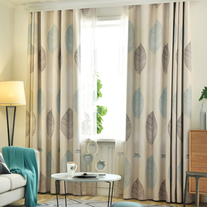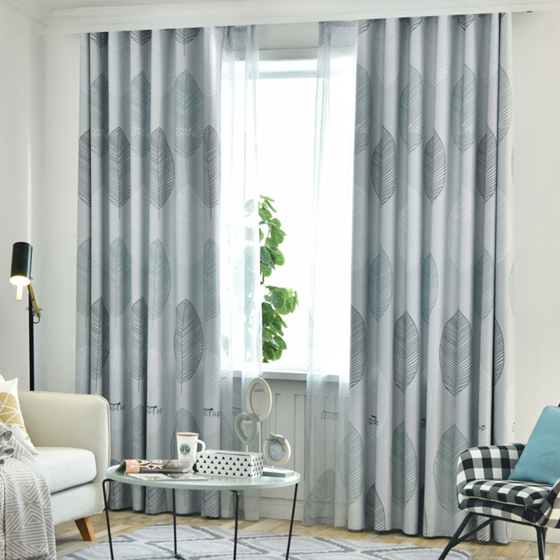 【2枚組】北欧風 葉柄 遮光カーテンセット 遮光1級 防寒断熱 ドレープ1枚&レース1枚 セットカーテン 2倍ヒダ