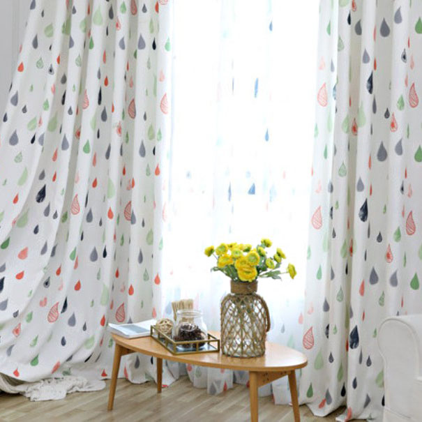 【2枚組】水滴 キッズルームおすすめ 半遮光 UVカット ドレープ1枚&レース1枚カーテンセット 2倍ヒダ