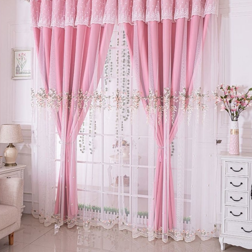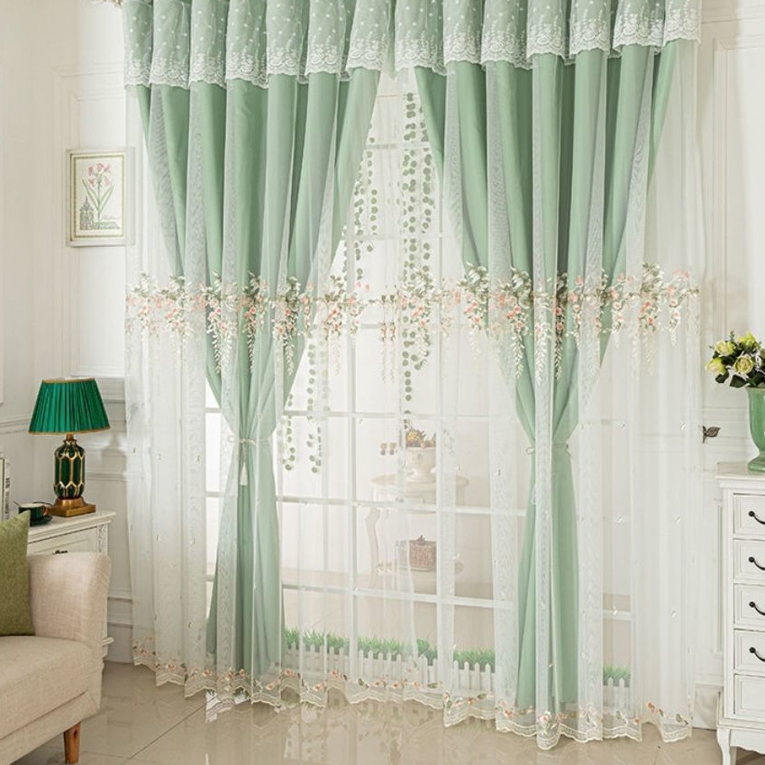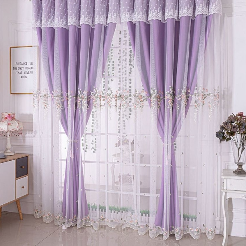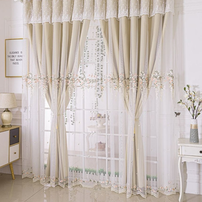 おしゃれ ゴージャス 華やか 繊細で絶妙な刺繍 レース付き 1級遮光 5色 遮熱防寒 防音保温 ドレープ+レース 一体型カーテン 2倍ヒダ