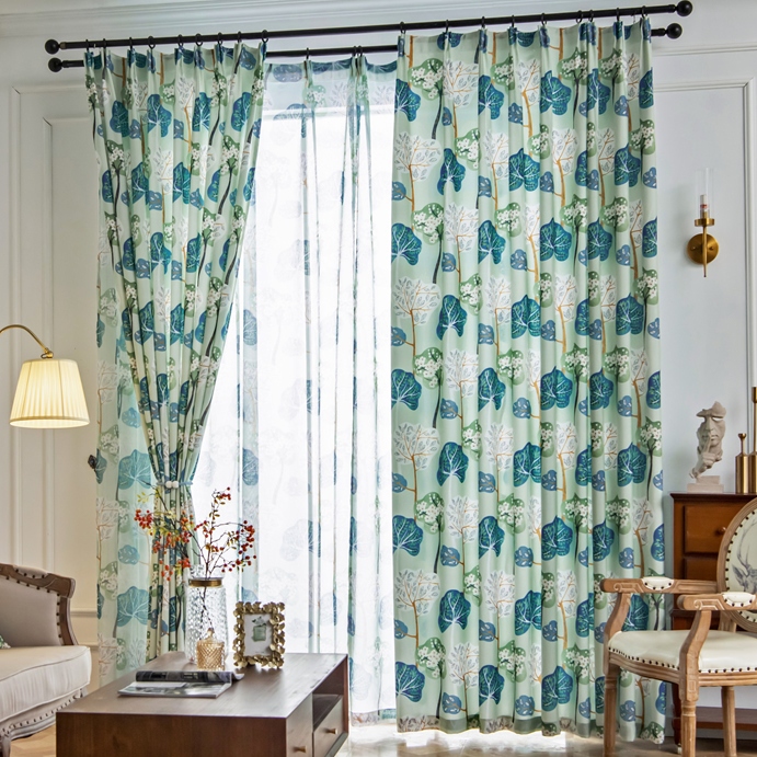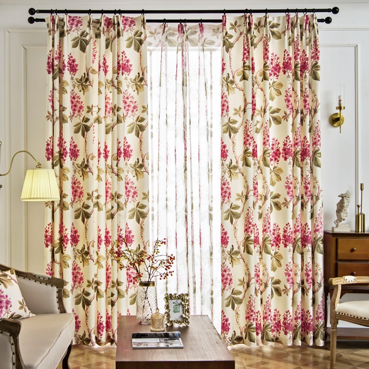 【2枚組】9タイプ 花柄 ボタニカル 田舎風 おしゃれ 爽やかな部屋雰囲気 遮光 遮熱保温 ドレープ+レース カーテン 2倍ヒダ