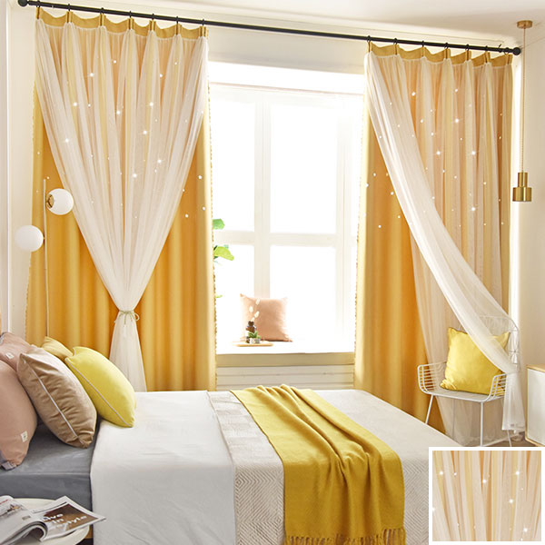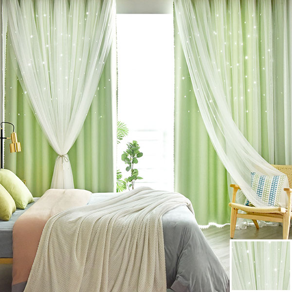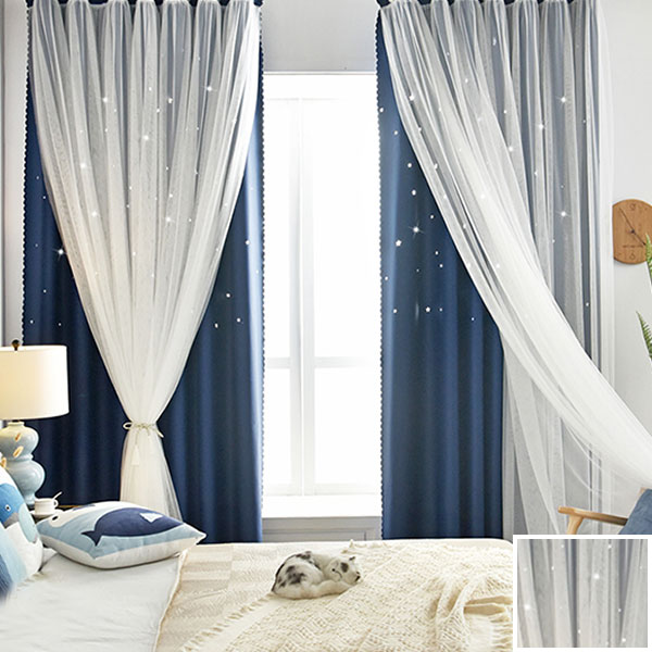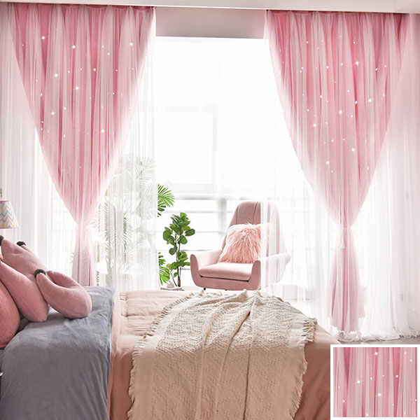 【一体型】6色 姫系 お星さま 明るい色合いのドレープとレース一体型カーテン 遮光2級 2倍ヒダ