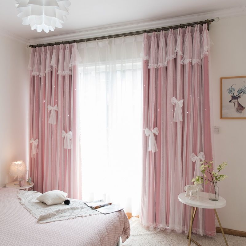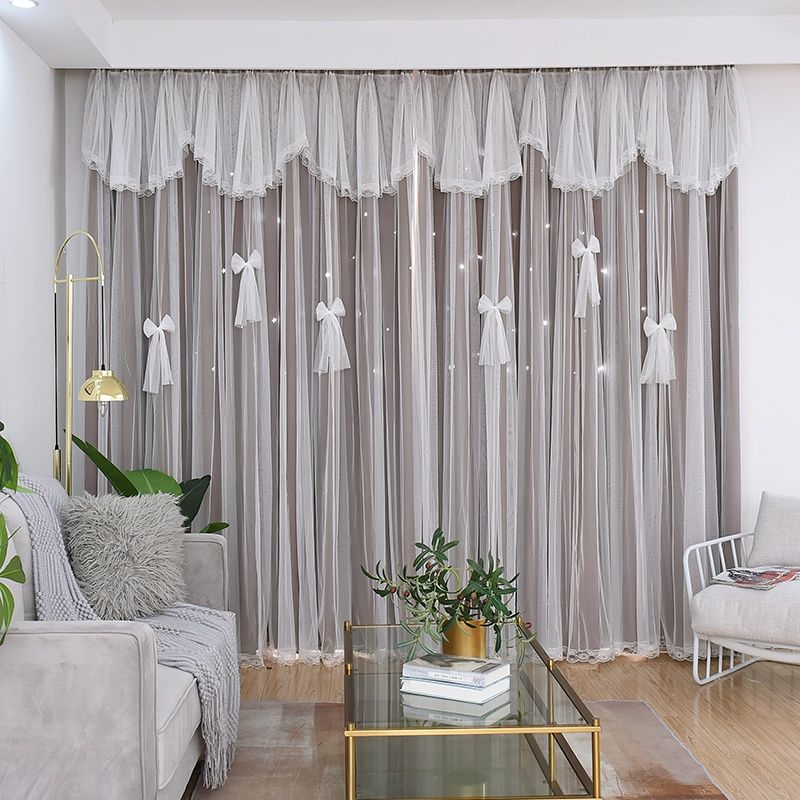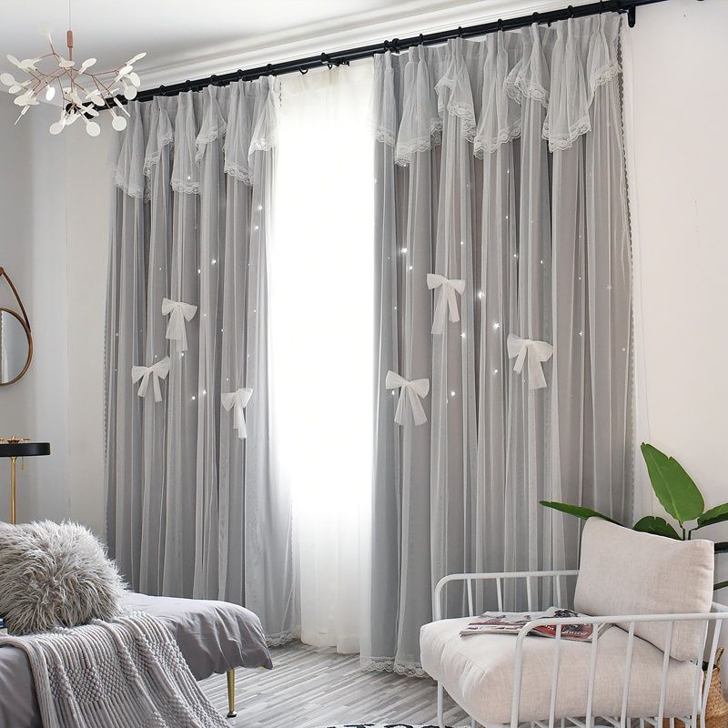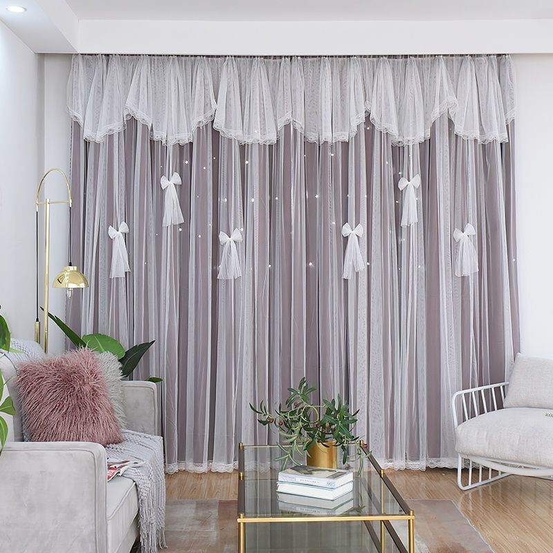 【一体型】9色 姫系 ロマンチック お星さまドレープとレース一体型カーテン 遮光3級 2倍ヒダ