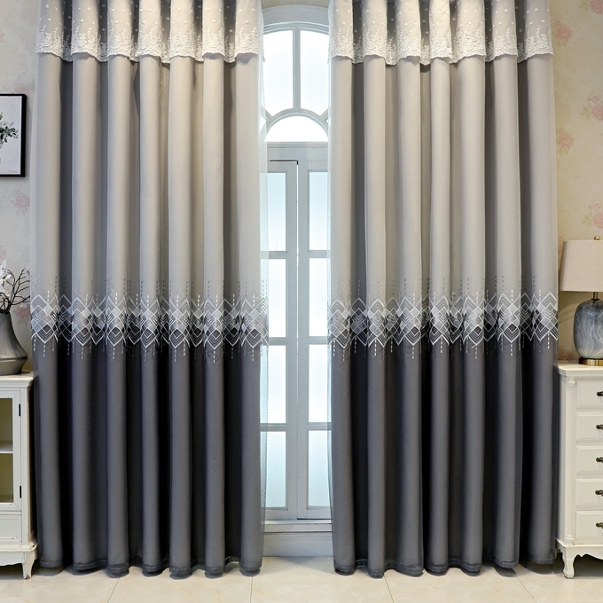 北欧 厚地 刺繍 おしゃれ ドレープ&レース一体型デザイン 遮光1級 遮熱 カーテン 2倍ヒダ
