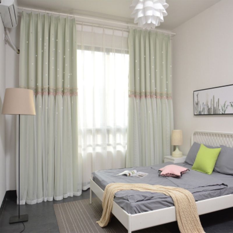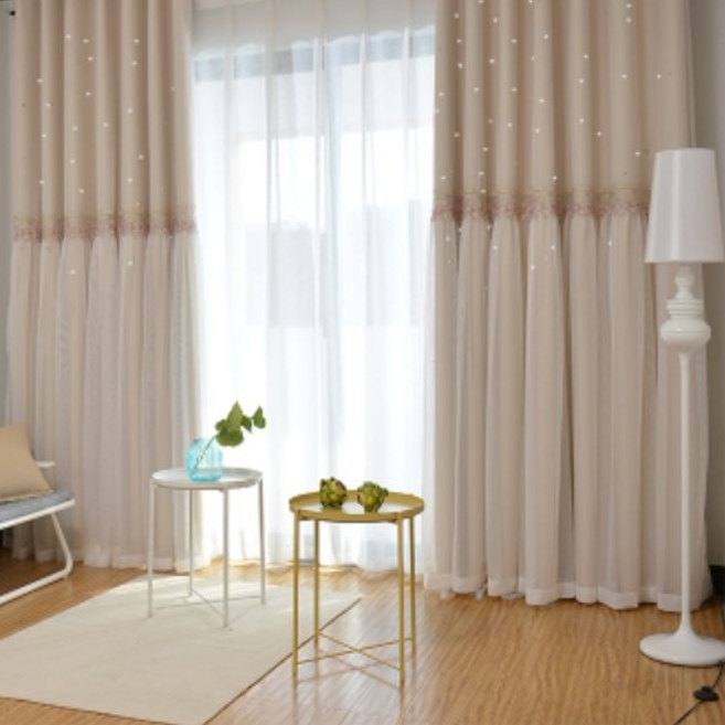 insで大人気 おしゃれ 可愛い星柄のデザイン 透かし彫り 大人気姫系刺繍 遮光 ドレープ+レース 一体型カーテン 2倍ヒダ