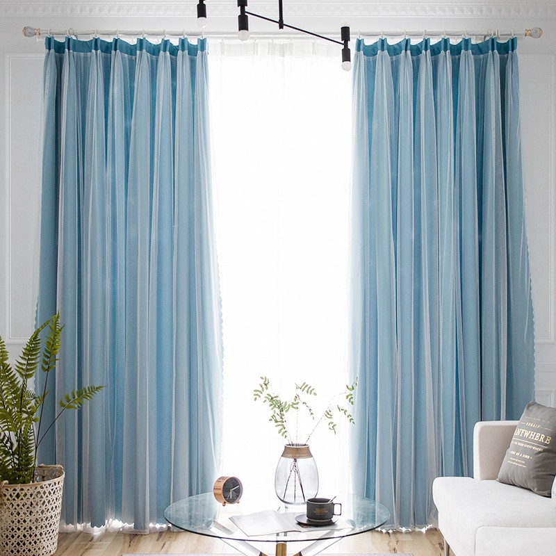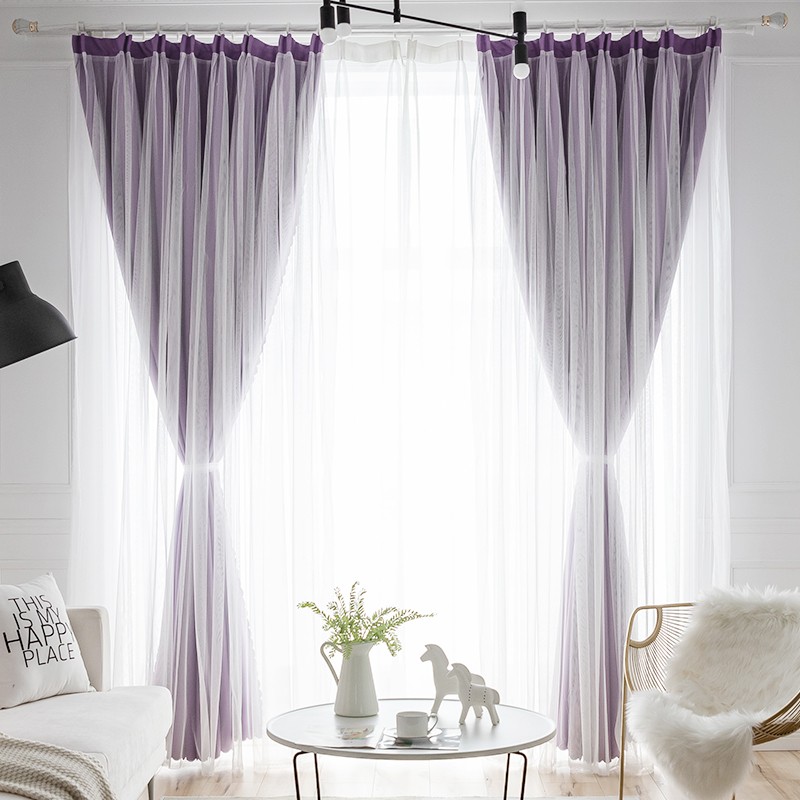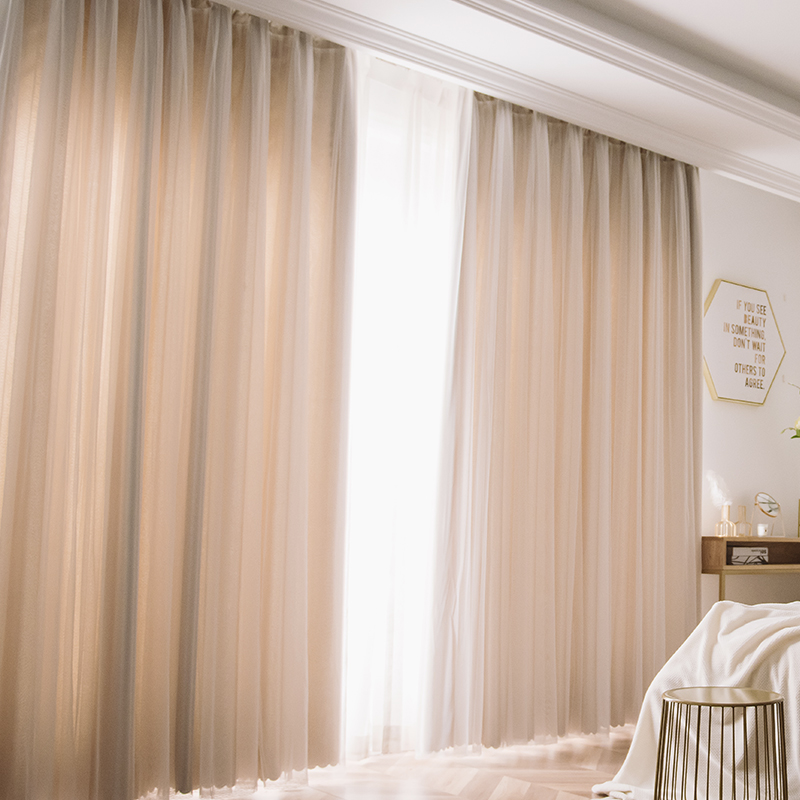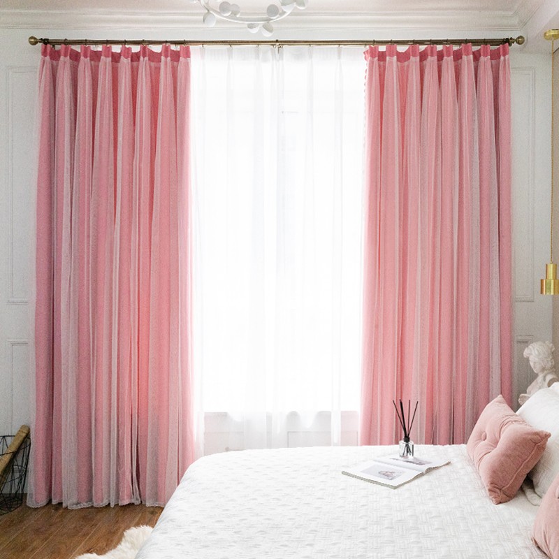 【一体型】 全7色 韓国系 エレガント 無地 遮光 可愛い 姫 女性部屋 子供部屋 二重カーテン おしゃれ カーテン 2倍ヒダ