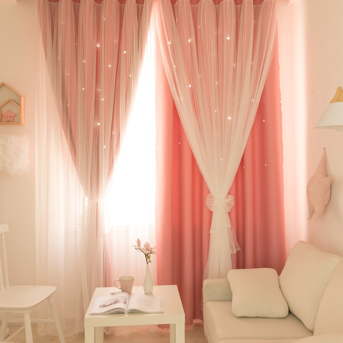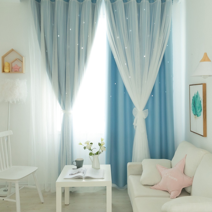 1級遮光 遮熱保温 おしゃれな6色 2重カーテン 姫系 透かし彫り 星柄 北欧風 一体型カーテン 2倍ヒダ
