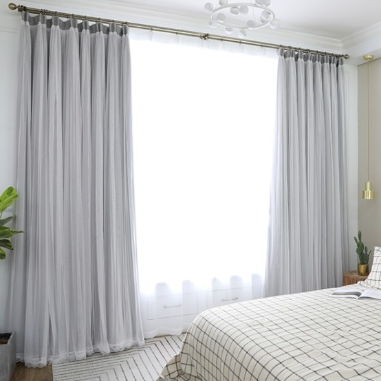 【遮光カーテン・遮光1級】おしゃれ 北欧 シンプルなデザイン 無地 遮光1級 断熱 ドレープ&レース 一体型カーテン 2倍ヒダ