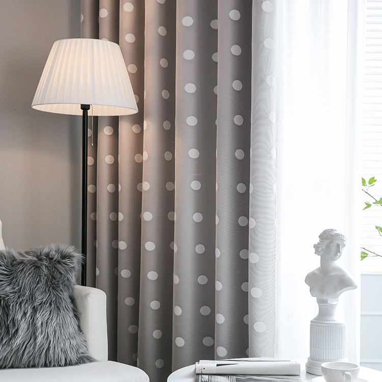 落ち着く色合いで優しい雰囲気 無地 2級遮光 ドレープ&ドット柄レース一体型カーテン 2倍ヒダ