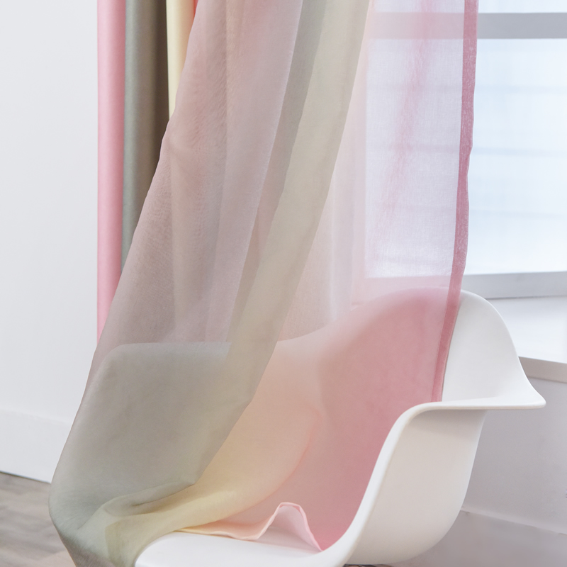 【レース】西海岸風 清新感 グラデーションのカラー 目隠し おしゃれ レースカーテン 2倍ヒダ