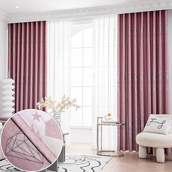 【2枚組】ジャガード ダイヤ柄 可愛い 遮光2級 厚手 北欧 おしゃれ リビング 寝室 ドレープ1枚&レース1枚 カーテンセット 2倍ヒダ