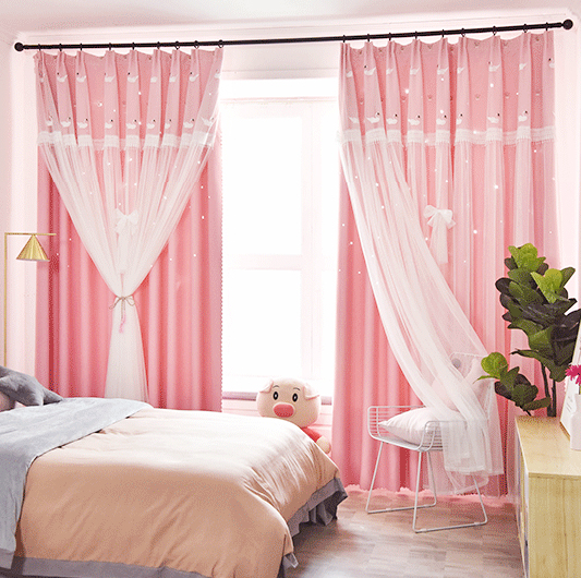 【一体型】お姫様の楽しい空間へ ドレープ&レース一体型デザイン 遮光1級 遮熱保温 2倍ヒダ