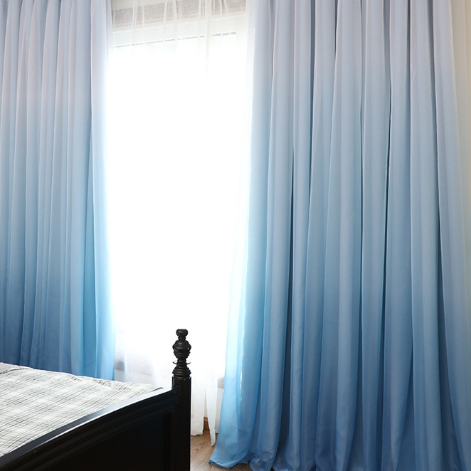 【一体型】3色 おしゃれ グラデーションデザイン UVカット 昼も夜も目隠し 一体型カーテン 2倍ヒダ