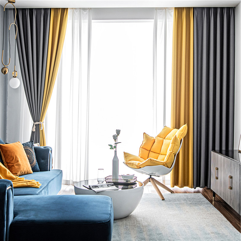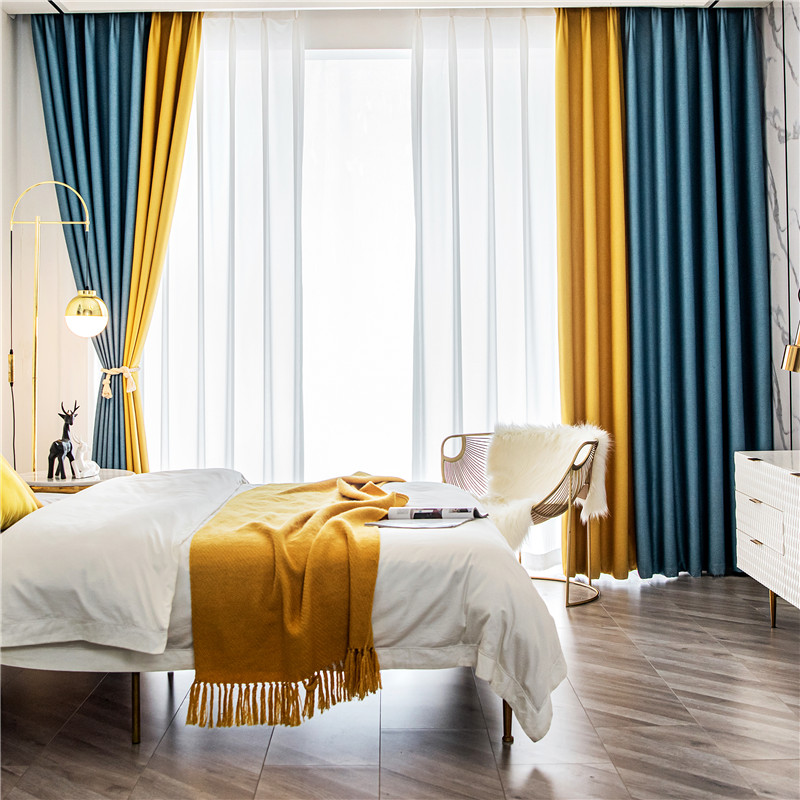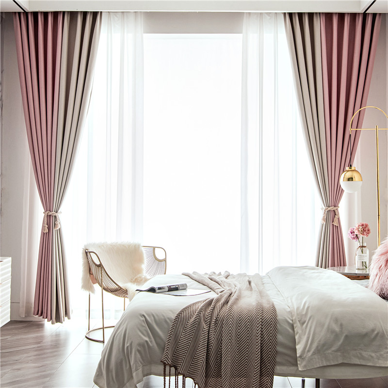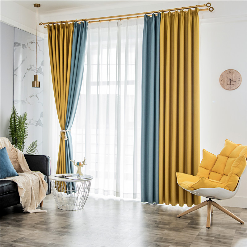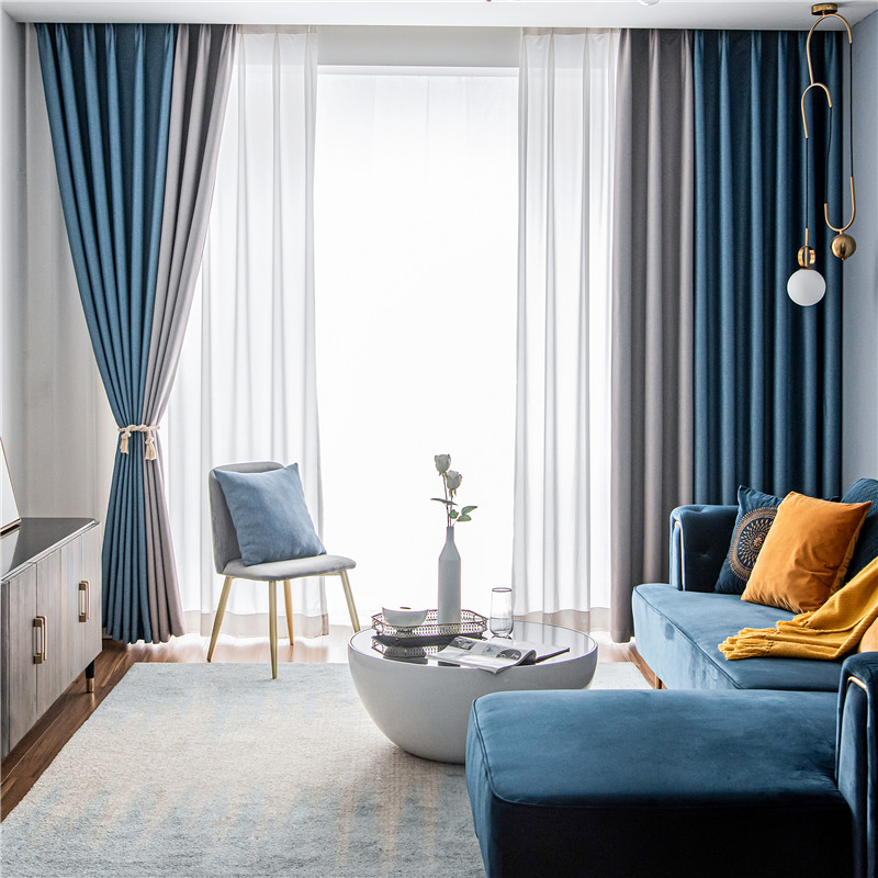 【2枚組】北欧 配色 切り替え 洗える ドレープ1枚&レース1枚 遮光 取り付け簡単 良い垂れ感 おしゃれ 断熱保温 カーテン 2倍ヒダ