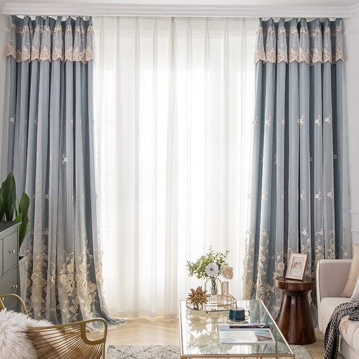 華奢 ゴージャス 一体型 カーテン お花柄 パール飾り 宮殿風 遮光2級 二重カーテン おしゃれ カーテン 華麗 刺繡 カーテン 2倍ヒダ