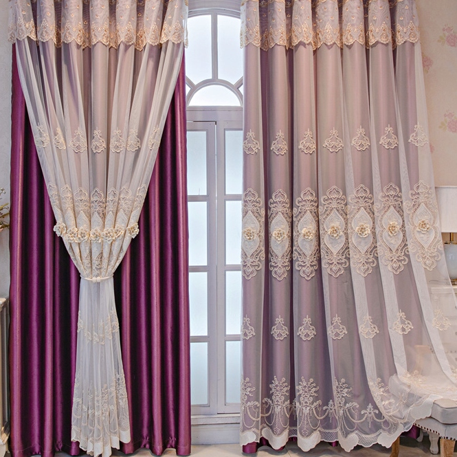 【一体型】上品 7色選べる きれいな花柄 刺绣 遮光 UVカット 一体型カーテン 2倍ヒダ